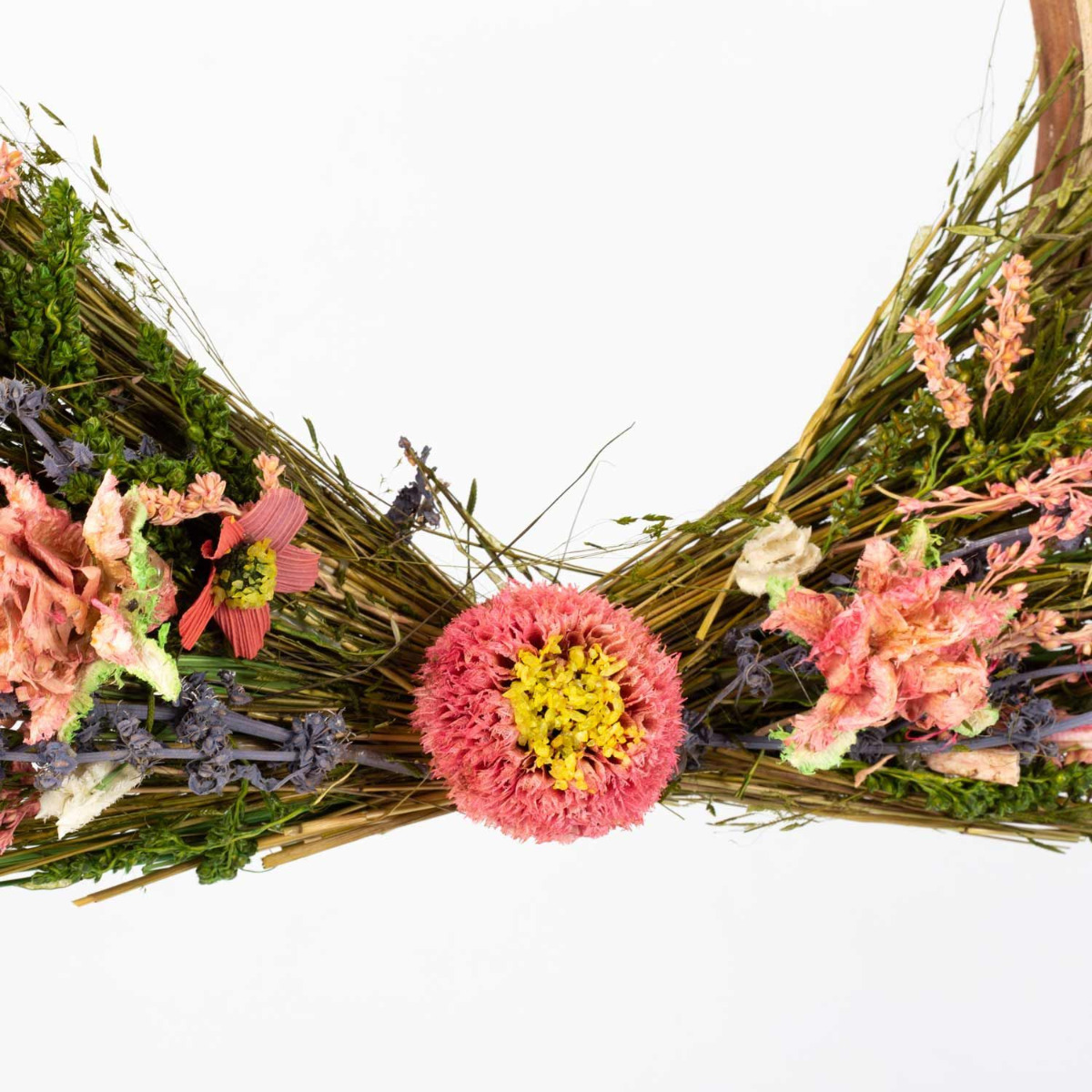 Corona di fiori secchi GALENO su anello, rosa-viola, 36,5cm, Ø30cm