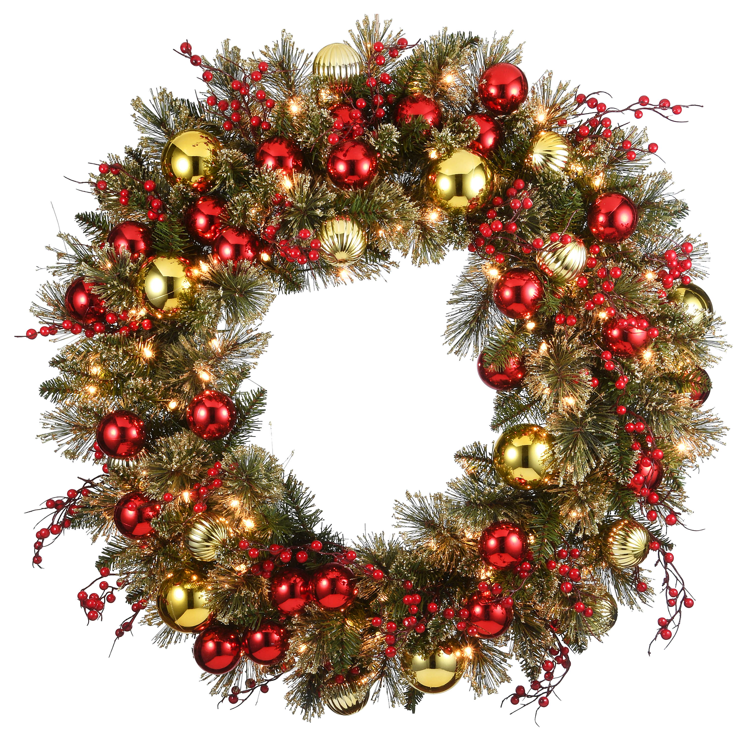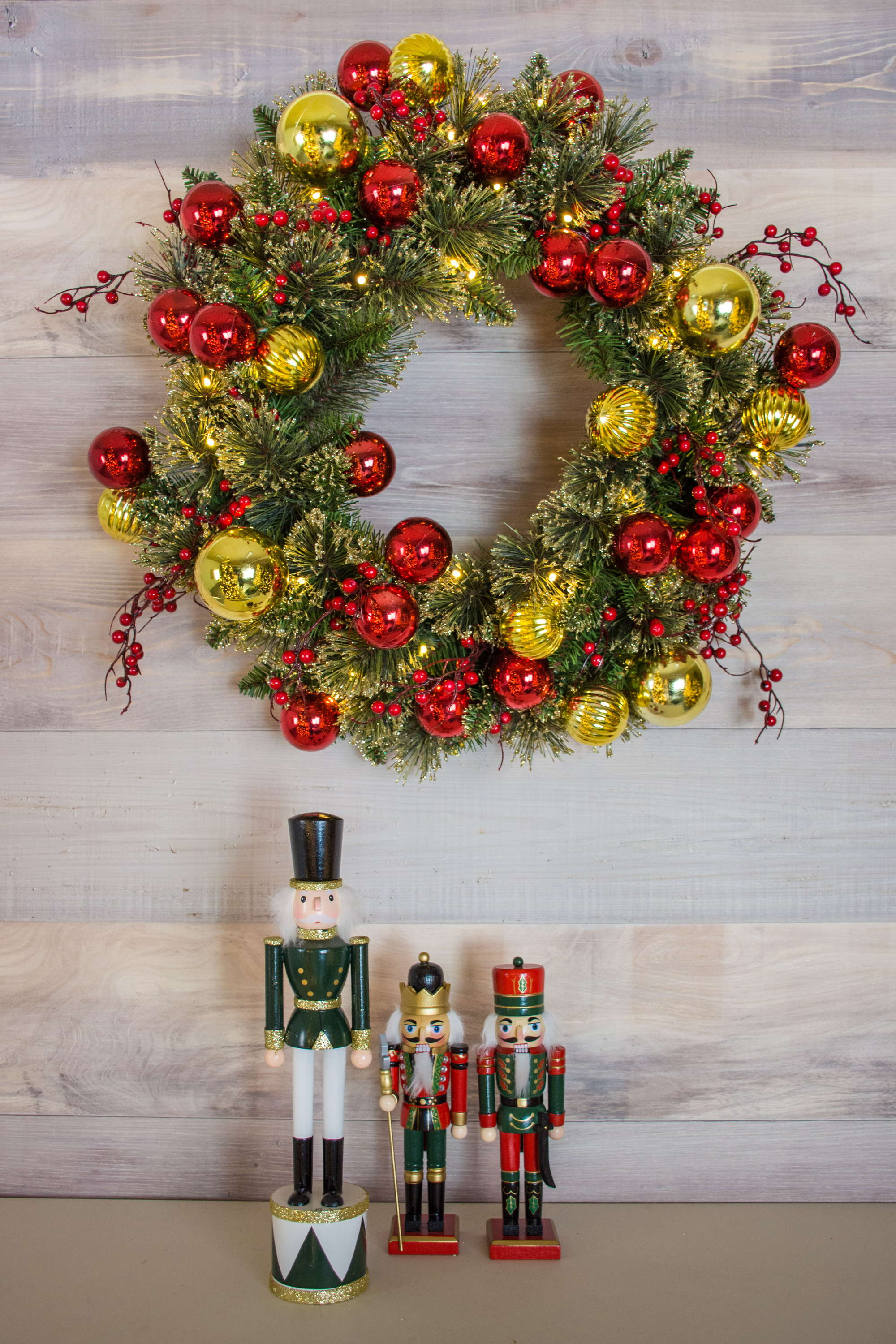 - Ghirlanda decorata con rami di bacche, nonché palline di Natale dorate e rosse e numerosi LED