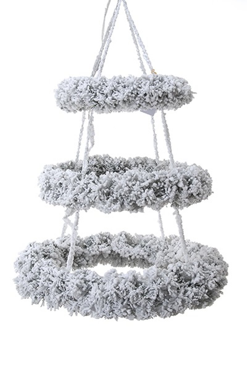 Corona finta da soffitto in abete NAVANTA, a 3 livelli, innevata, bianca, Ø90cm