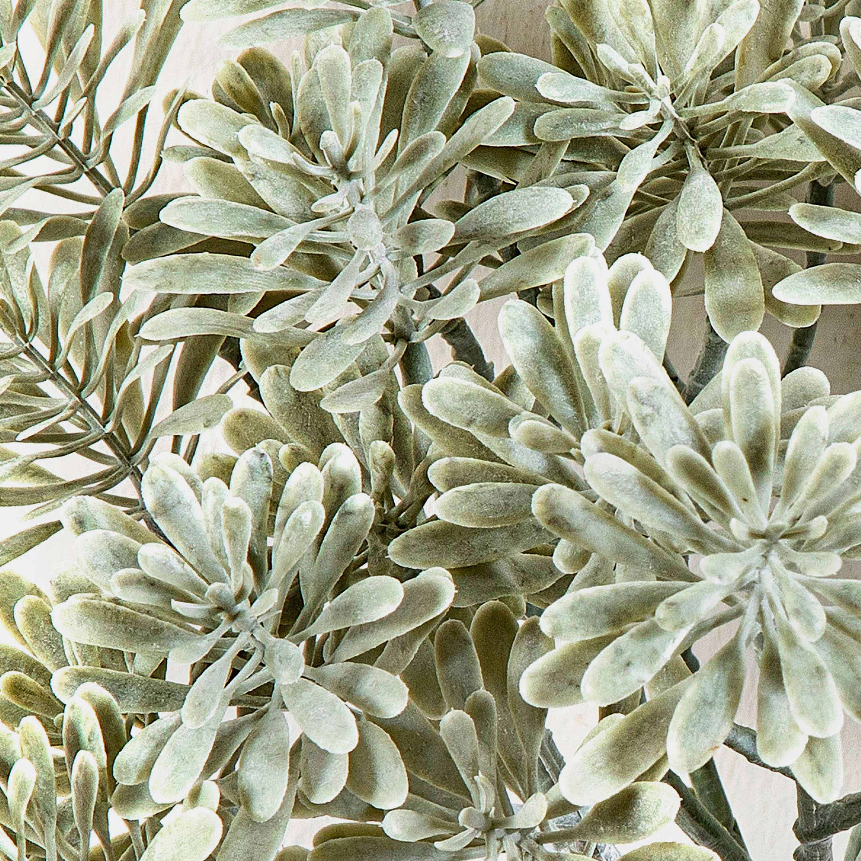 Cespuglio artificiale ALGOL di colore grigio-verde. Ideale in una fioriera di vostra scelta, ad esempio in soggiorno, sala da pranzo, ecc.