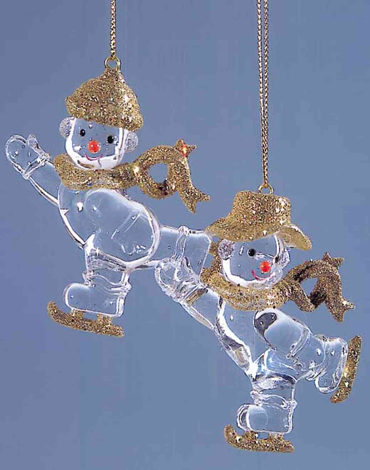 Decorazione acrilica da appendere pupazzo di neve LILLA, 2 pezzi, glitter, oro, 3x8 cm