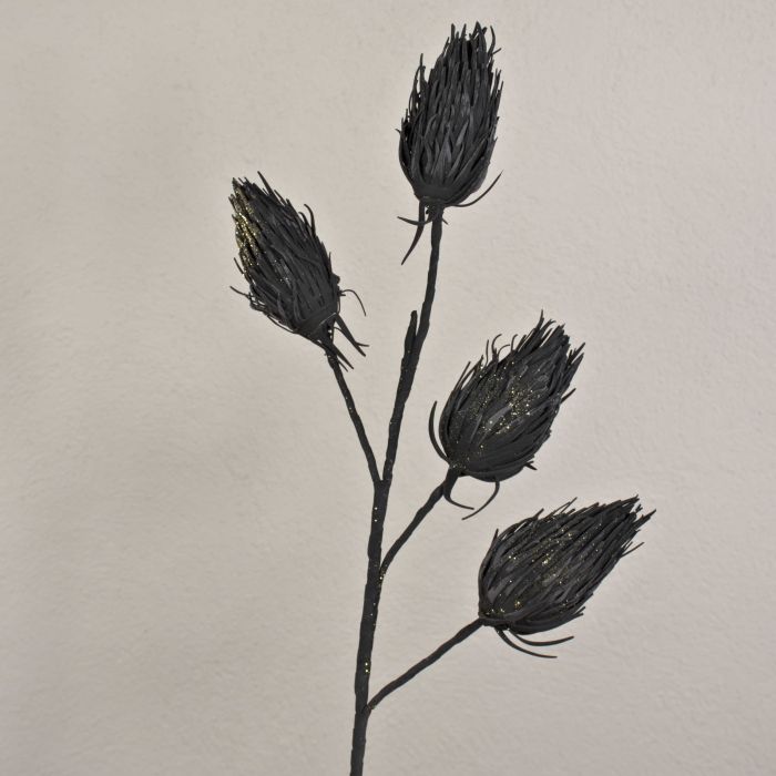 Decorazione cardo nobile in schiuma plastica MISAEL con glitter, nero, 120 cm