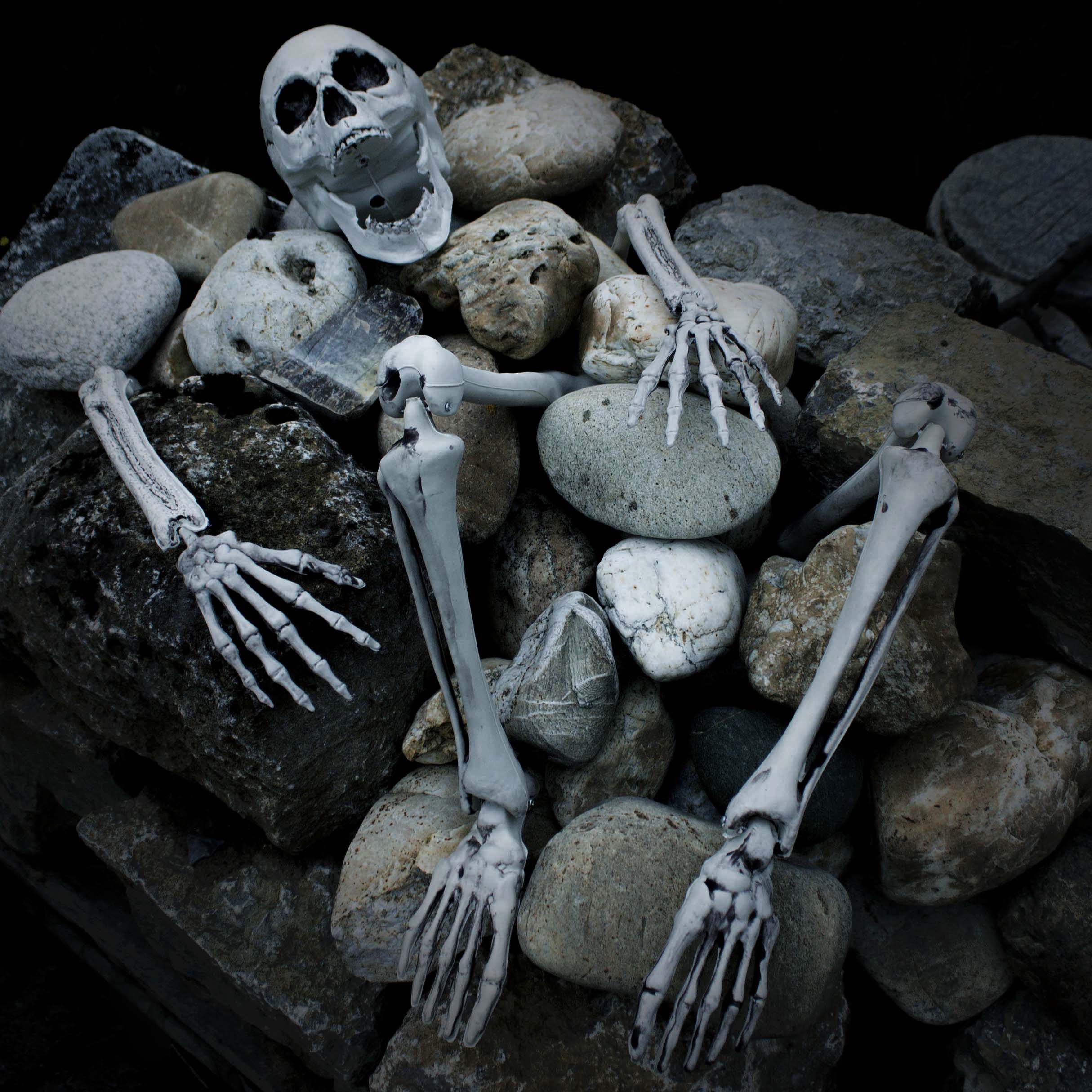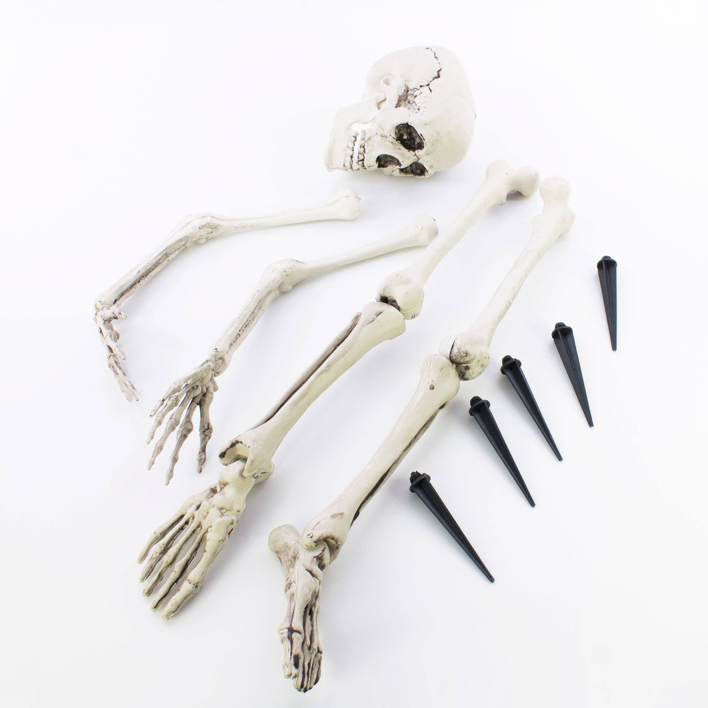 Decorazione di Halloween parti di scheletro ADALBERT con 5 picchetti, 19 cm, 45 cm, 66 cm