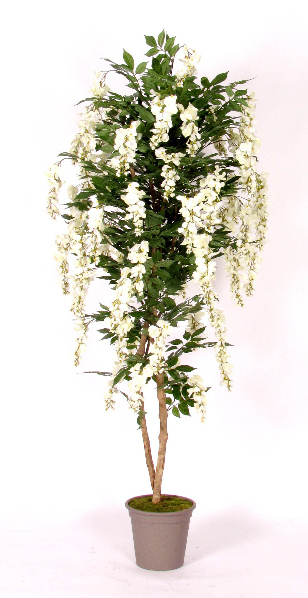 Decorazione glicine MALENKA, tronchi naturali, con fiori, bianco, 175 cm - Made in Italy