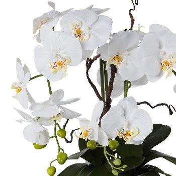 Decorazione orchidea salice contorto LULUDI, vaso in ceramica argento, radici bianche, 55 cm