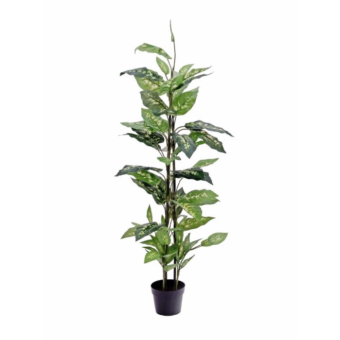 Dieffenbachia artificiale con foglie verdi-bianche. Questa pianta decorativa a 3 fusti è dotata di un gambo che ne facilita la messa in posa.