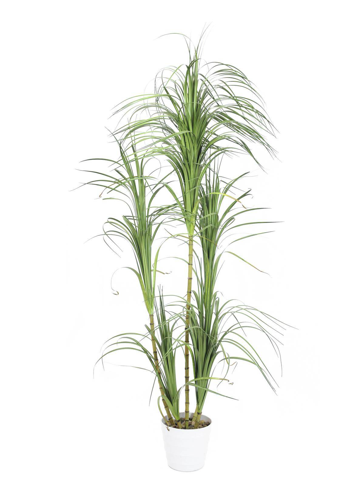 Bellissima dracena, conosciuta forse piú comunemente come albero del drago, con numerosi ciuffi di colore verde. La pianta artificiale é comprensiva di vaso decorativo e misura ca. 215cm in altezza.