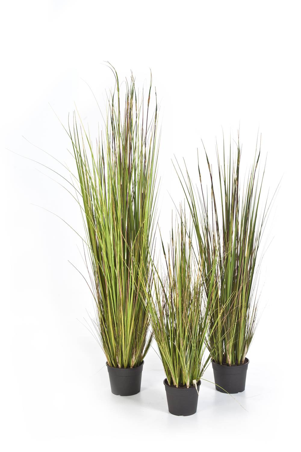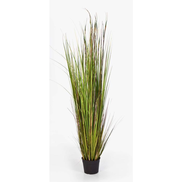 Erba coda di volpe artificiale SATRIO con foglie / steli verdi con venature gialle e sfumature rosso-marroni. Questo cespuglio d'erba artificiale, con i suoi 150 cm di altezza, funge da graziosa decorazione per i vostri ambienti.