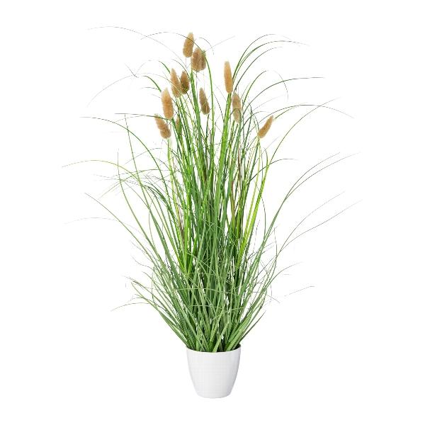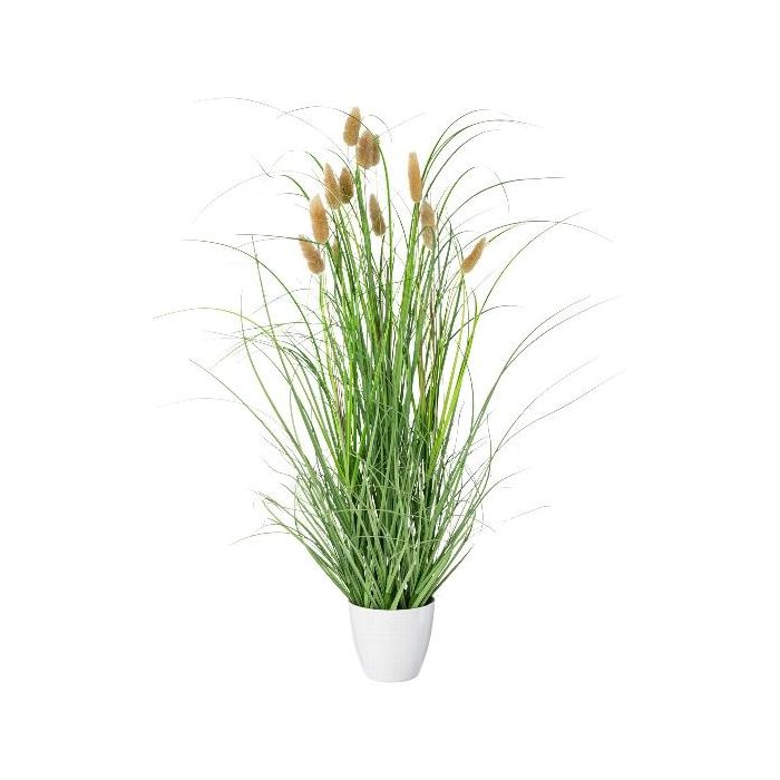 Erba decorativa BIRVO in vaso di melamina, pannocchie, beige, 60 cm