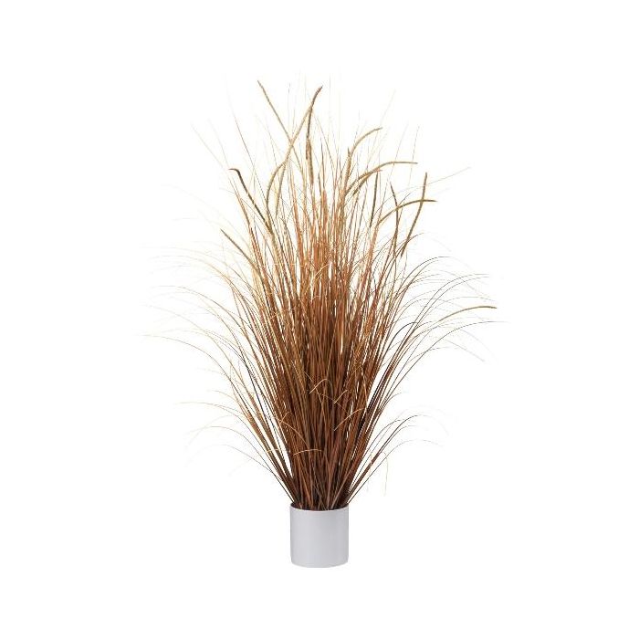 Erba sintetica carice WARTO in vaso di melamina, pannocchie, marrone-beige, 125 cm