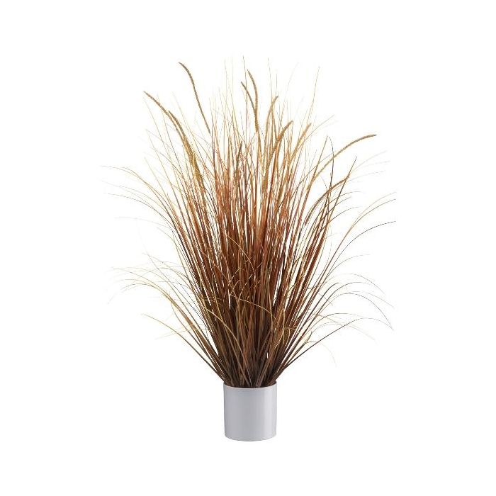 Erba sintetica carice WARTO in vaso di melamina, pannocchie, marrone-beige, 95 cm