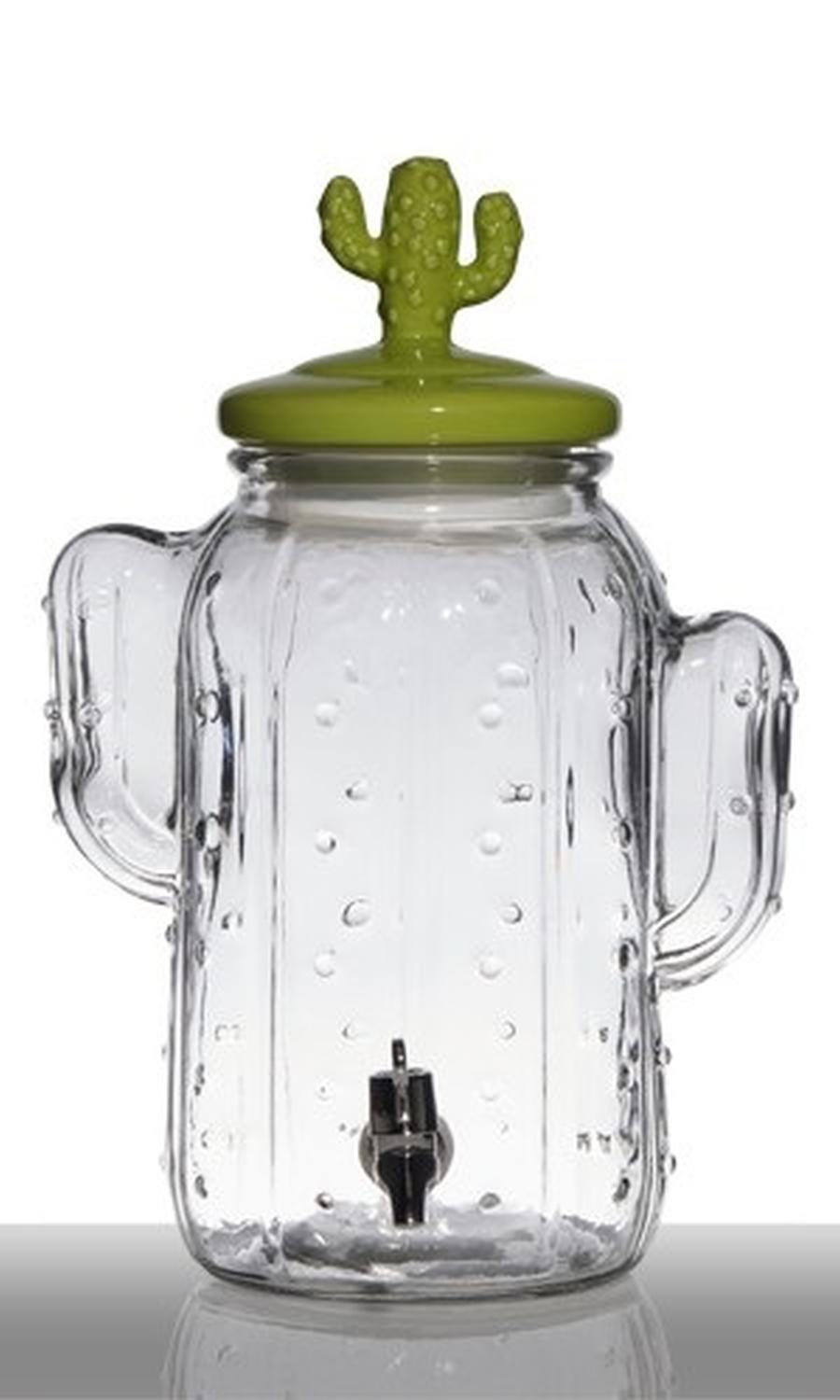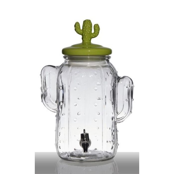 Erogatore per acqua AILIS, vetro, rubinetto, coperchio in ceramica a forma di cactus, trasparente-verde, 26x19x29 cm, 5 l