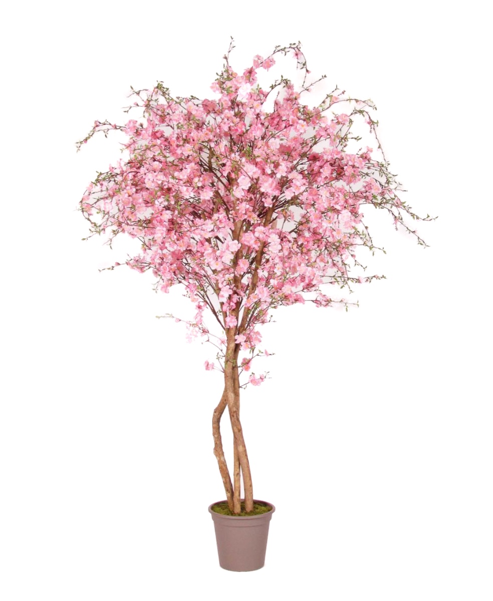 Falso pesco MILTRAUD, tronchi naturali, fiori, rosa, 175 cm - Made in Italy