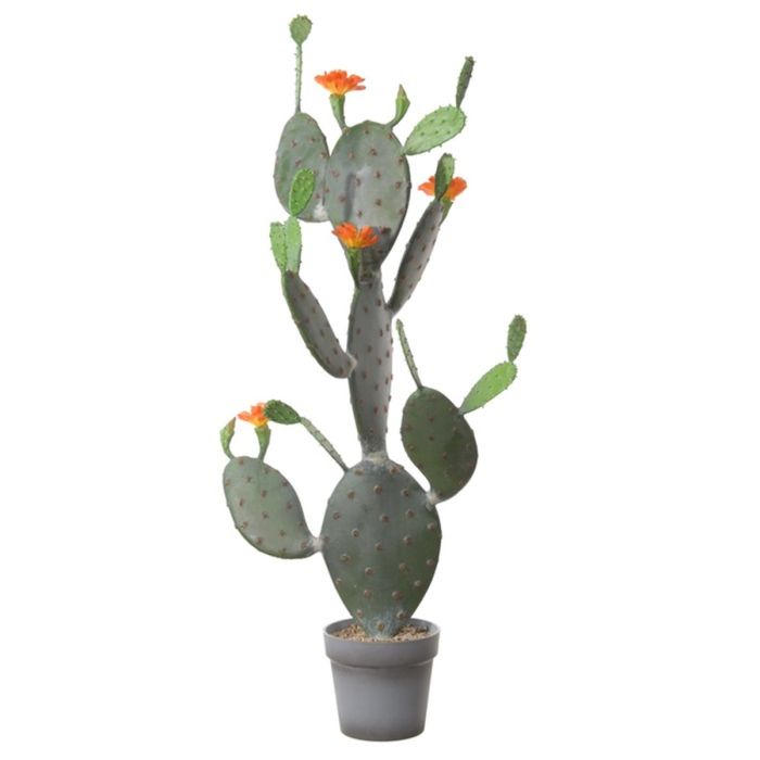 Fico d'India artificiale LEODORA con fiori, vaso decorativo, verde-arancio, 120cm