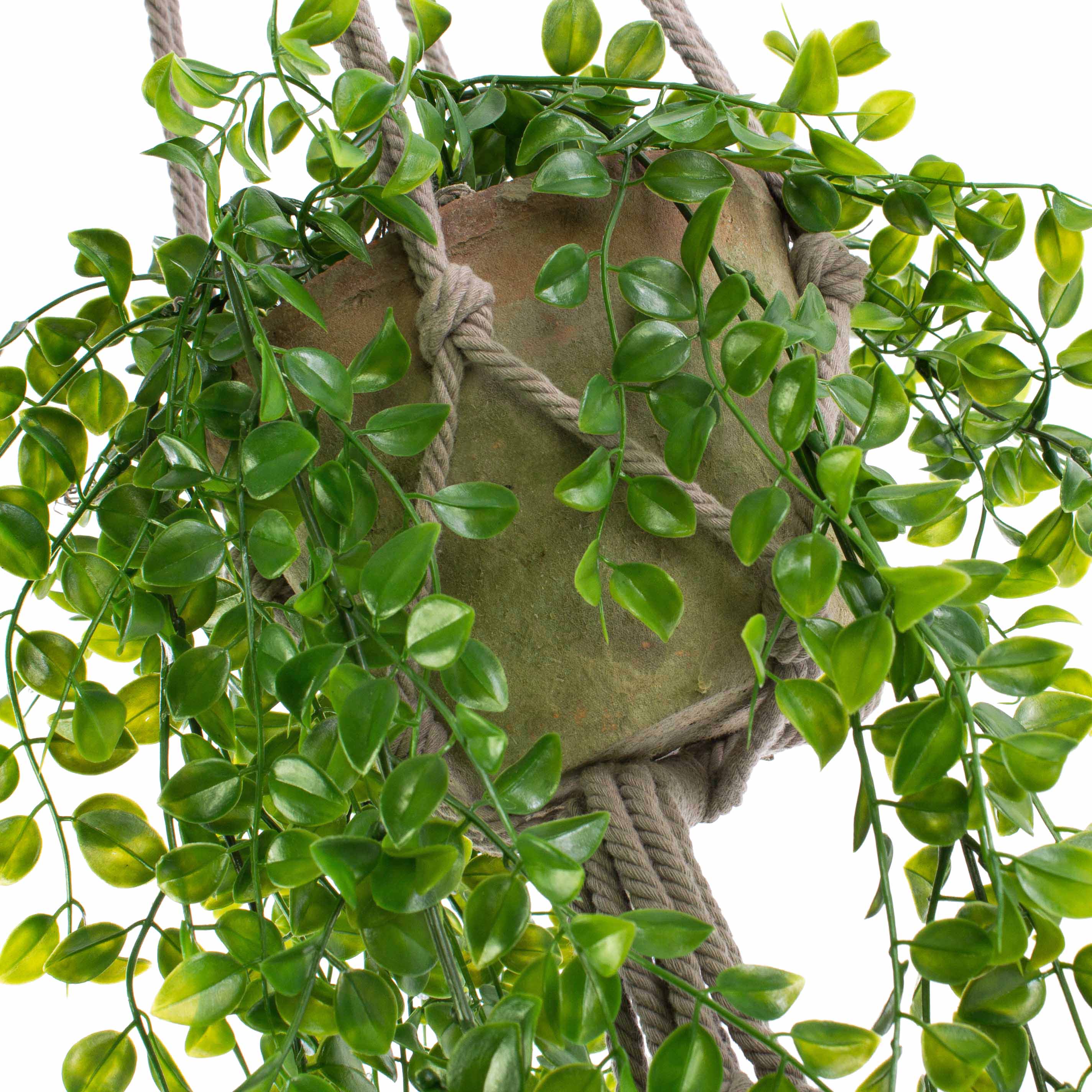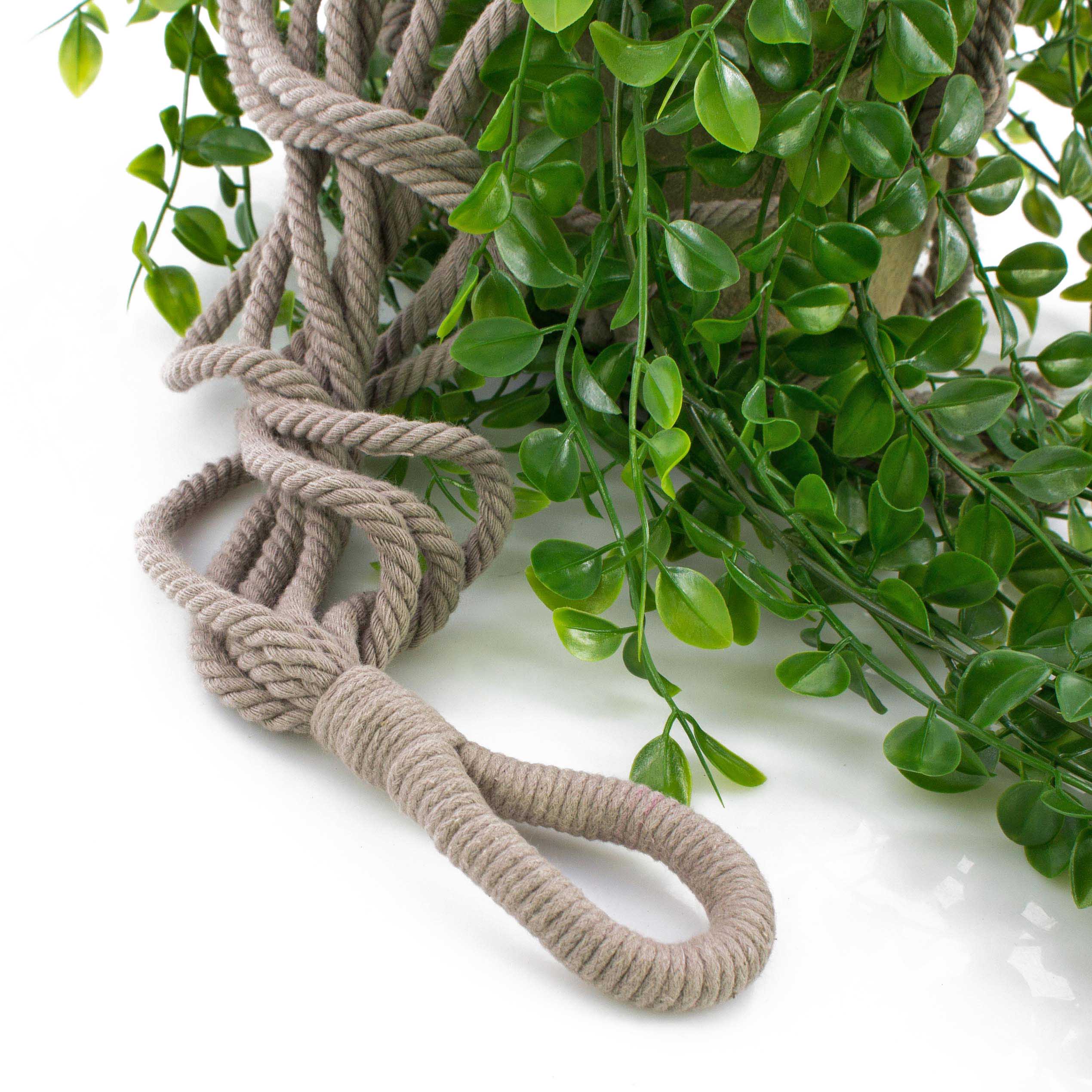 - Con corda in sisal annodata atta al sostegno del vaso.