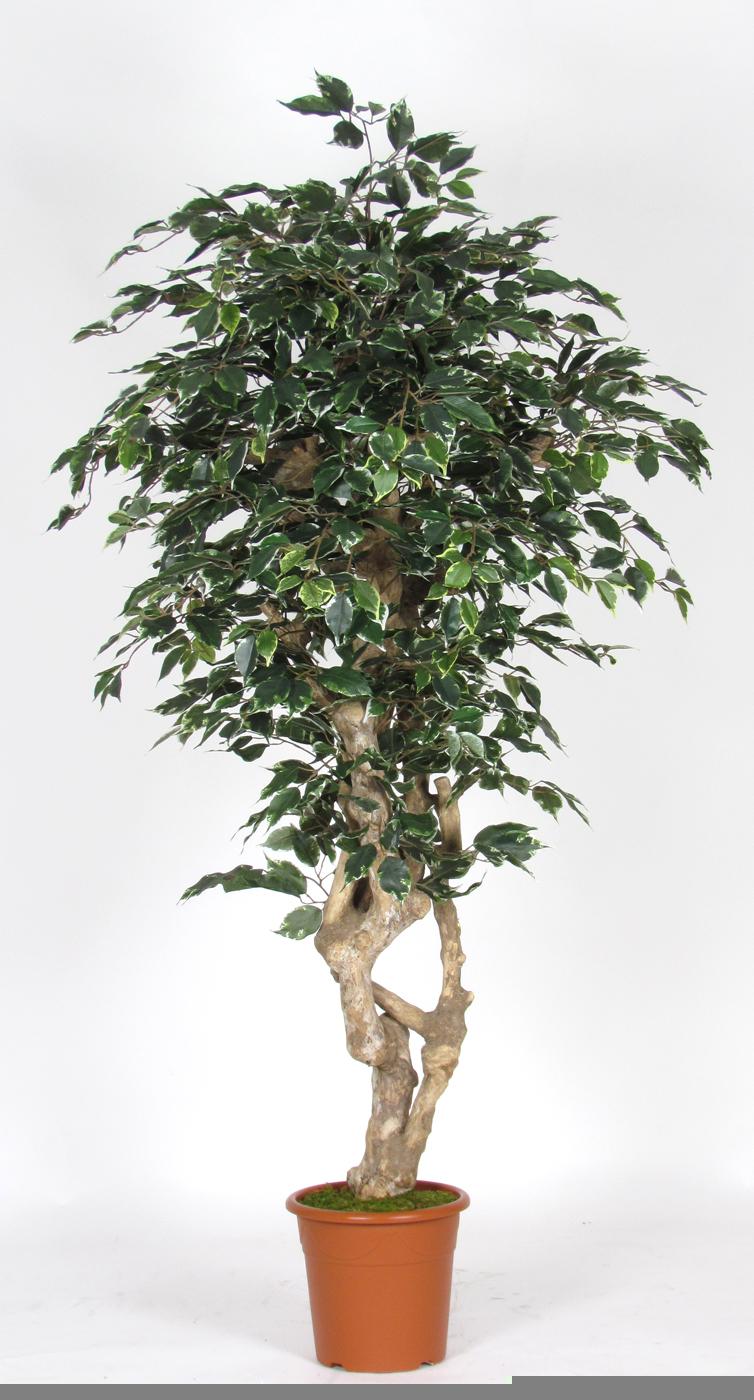 Ficus Benjamina artificiale SILENO, tronco vero, verde-bianco, 175 cm - Made in Italy