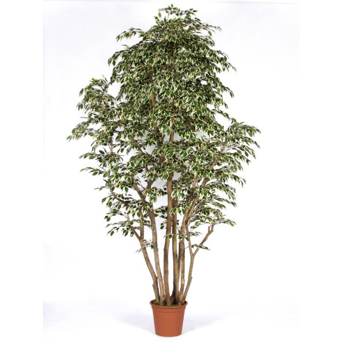 Ficus Benjamini artificiale MIMITIGO, tronchi veri, verde-bianco, 250 cm - Made in Italy