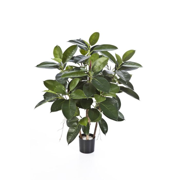 Ficus Elastica artificiale con fusti realistici e dall'aspetto naturale, 135 foglie ed un'altezza complessiva di ca. 90 cm.