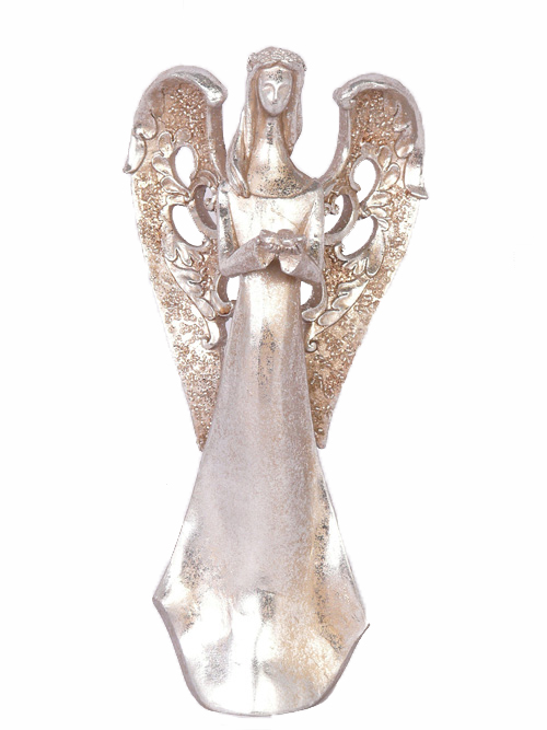 Figurina d'angelo PINTA, fiore che raggiunge, argento-rame, 30cm