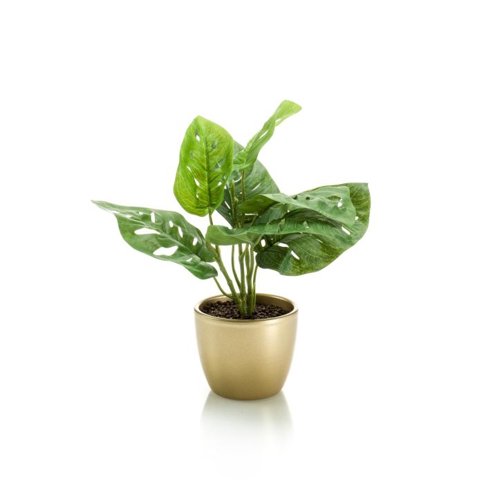 Filodendro artificiale Monstera Deliciosa PUYA, vaso in ceramica dorato, 30cm