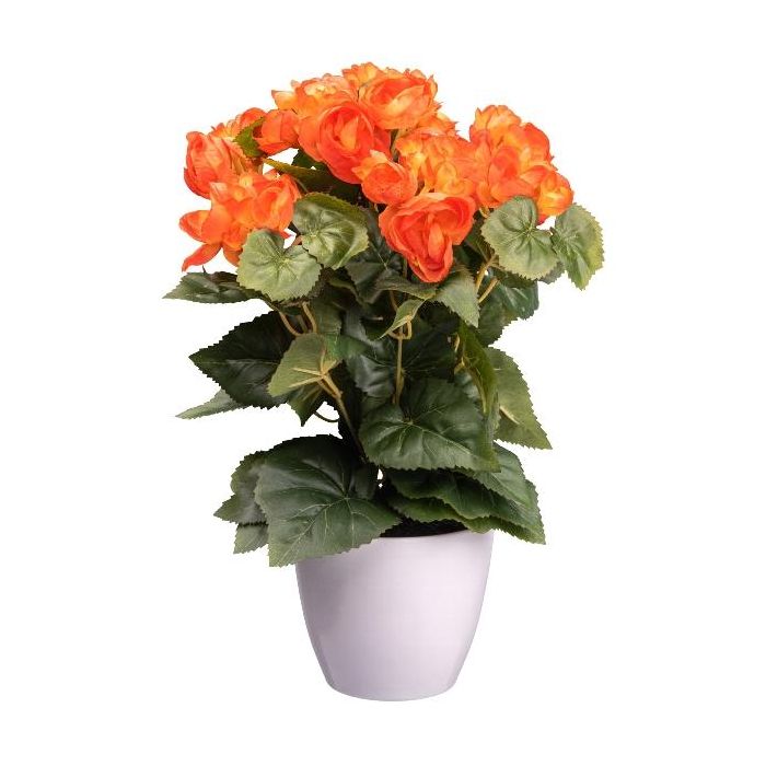 Fiore artificiale Begonia SYLINA, vaso decorativo bianco, arancione, 35 cm