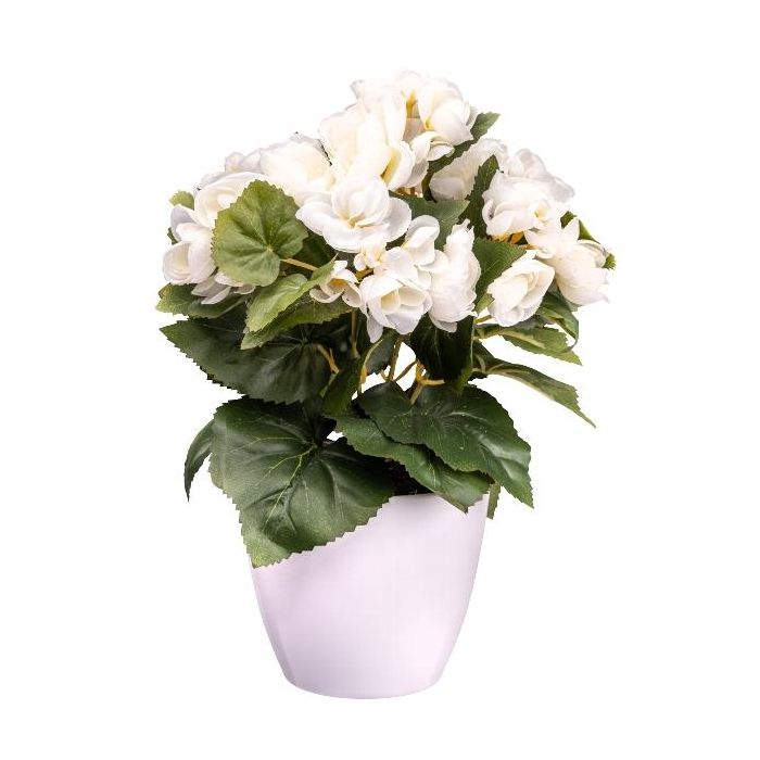 Fiore artificiale Begonia SYLINA, vaso decorativo bianco, color crema, 30 cm