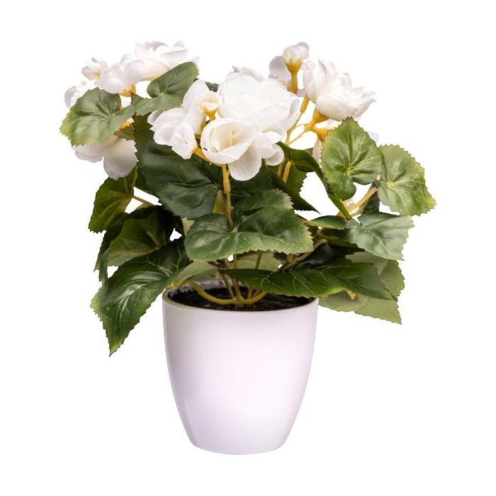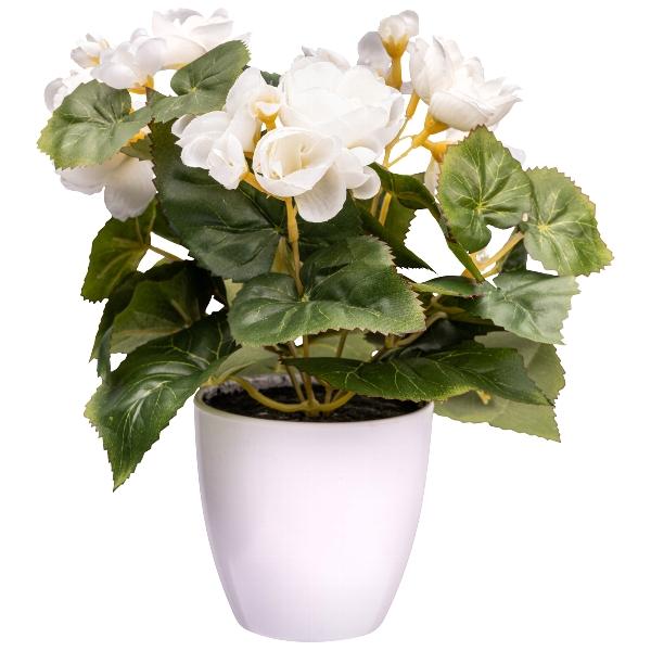 Fiore artificiale begonia SYLINA, vaso decorativo bianco, crema, 25 cm