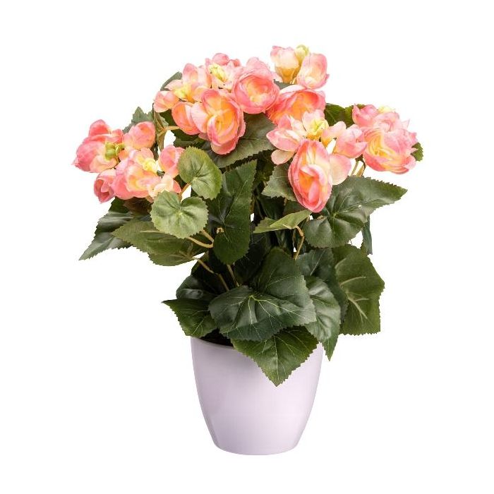 Fiore artificiale Begonia SYLINA, vaso decorativo bianco, rosa, 35 cm