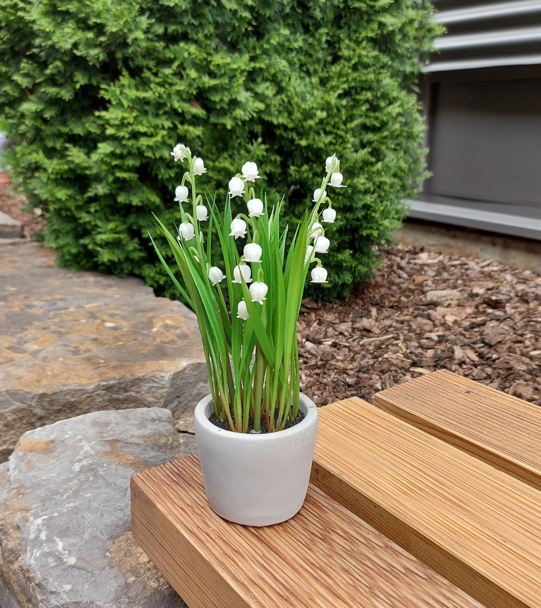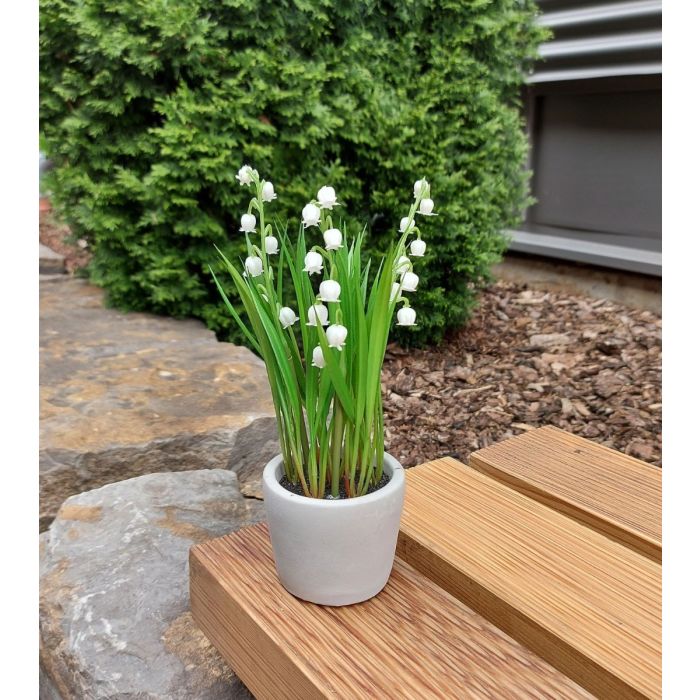 Fiore artificiale mughetto NOMTHA in vaso di cemento, bianco, 20 cm