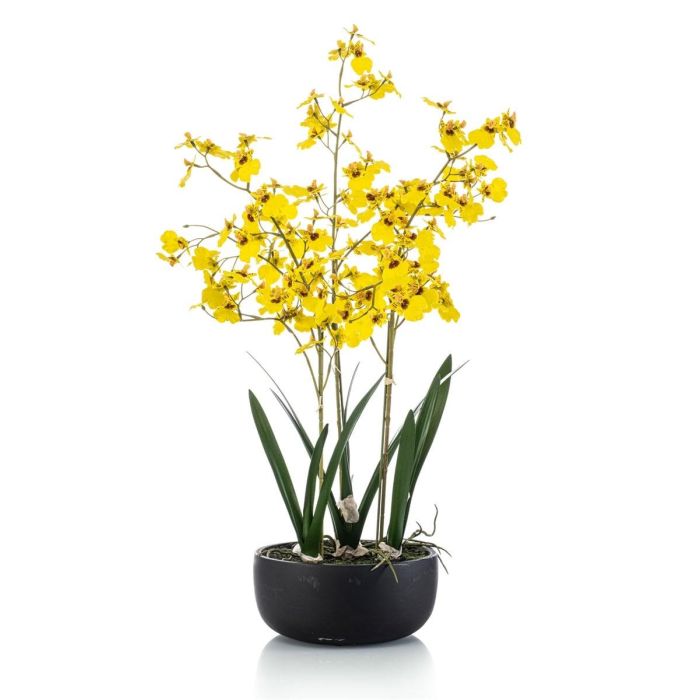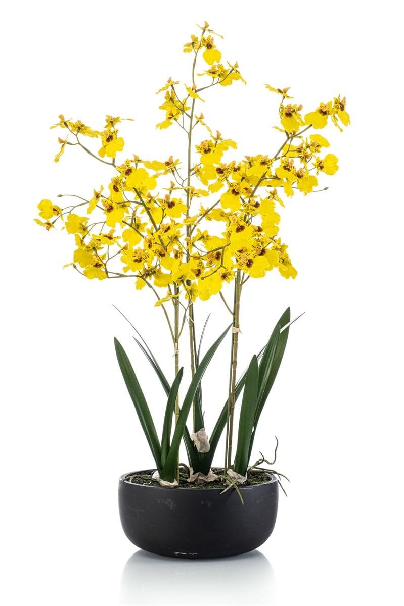 Fiore artificiale Oncidium Orchidea DEISHA in vaso decorativo, radici, giallo, 70 cm