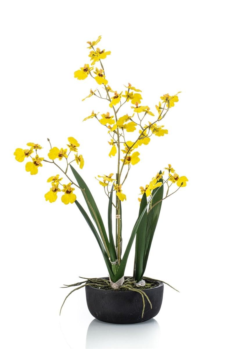 Fiore artificiale orchidea Oncidium DEISHA in vaso decorativo, radici, giallo, 60 cm