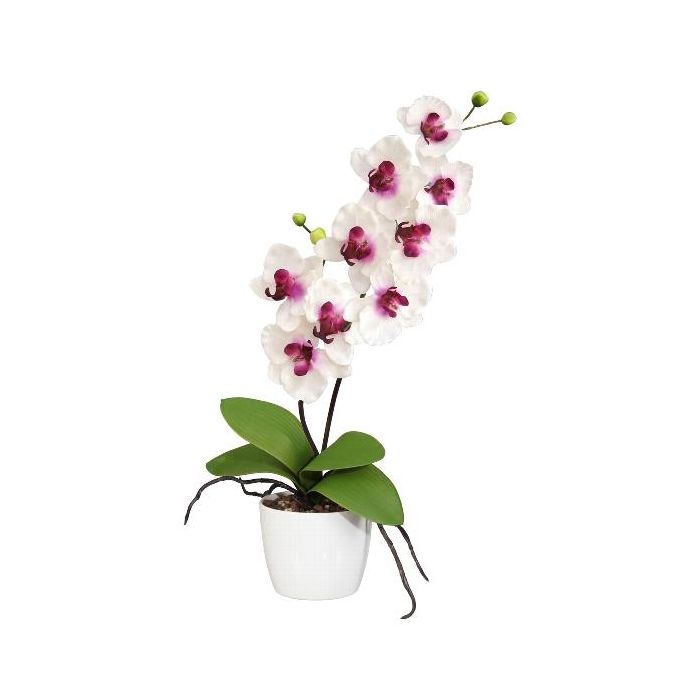 Fiore decorativo orchidea Phalaenopsis MORLEK, vaso in ceramica, radici, bianco-lilla, 60 cm