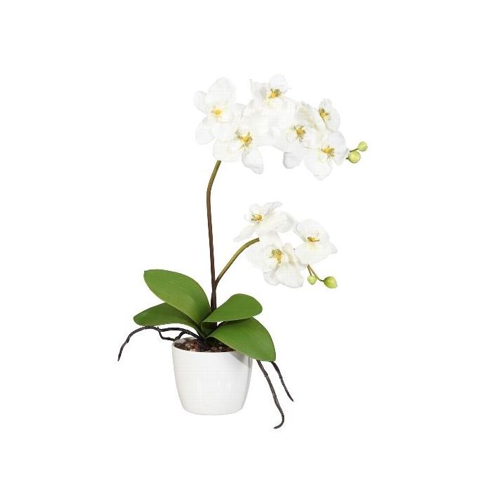 Fiore decorativo orchidea Phalaenopsis MORLEK, vaso in ceramica, radici, crema, 60 cm