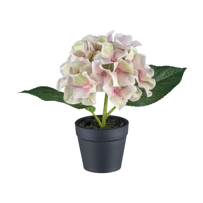 Fiore decorativo ortensia LENDYN in vaso decorativo, rosa pastello, 20 cm