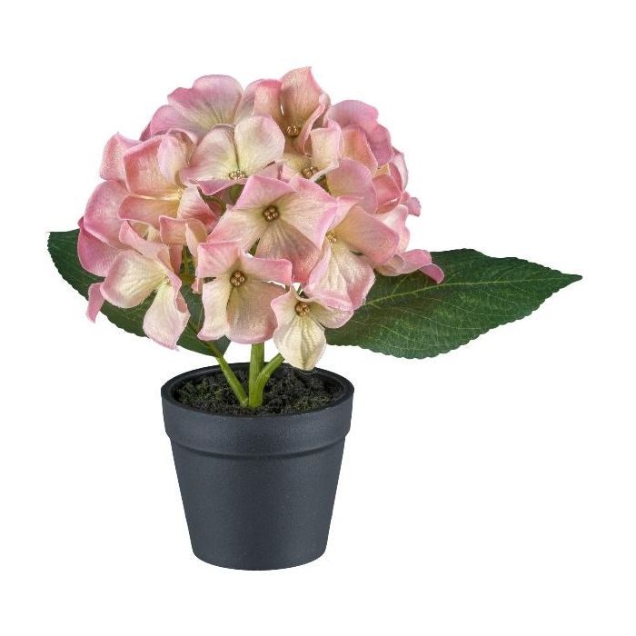 Fiore decorativo ortensia LENDYN in vaso decorativo, rosa-verde, 20 cm