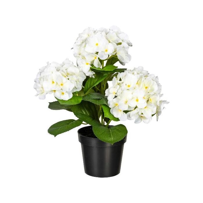 Fiore decorativo ortensia SLORFIN in vaso decorativo nero, bianco, 30 cm