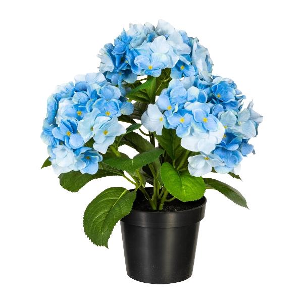 Fiore decorativo ortensia SLORFIN in vaso decorativo nero, blu, 30 cm