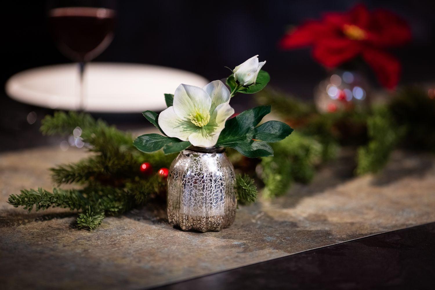 Fiore decorativo Rosa di Natale WINFRIEDA in vaso di vetro, crema-verde, 20 cm