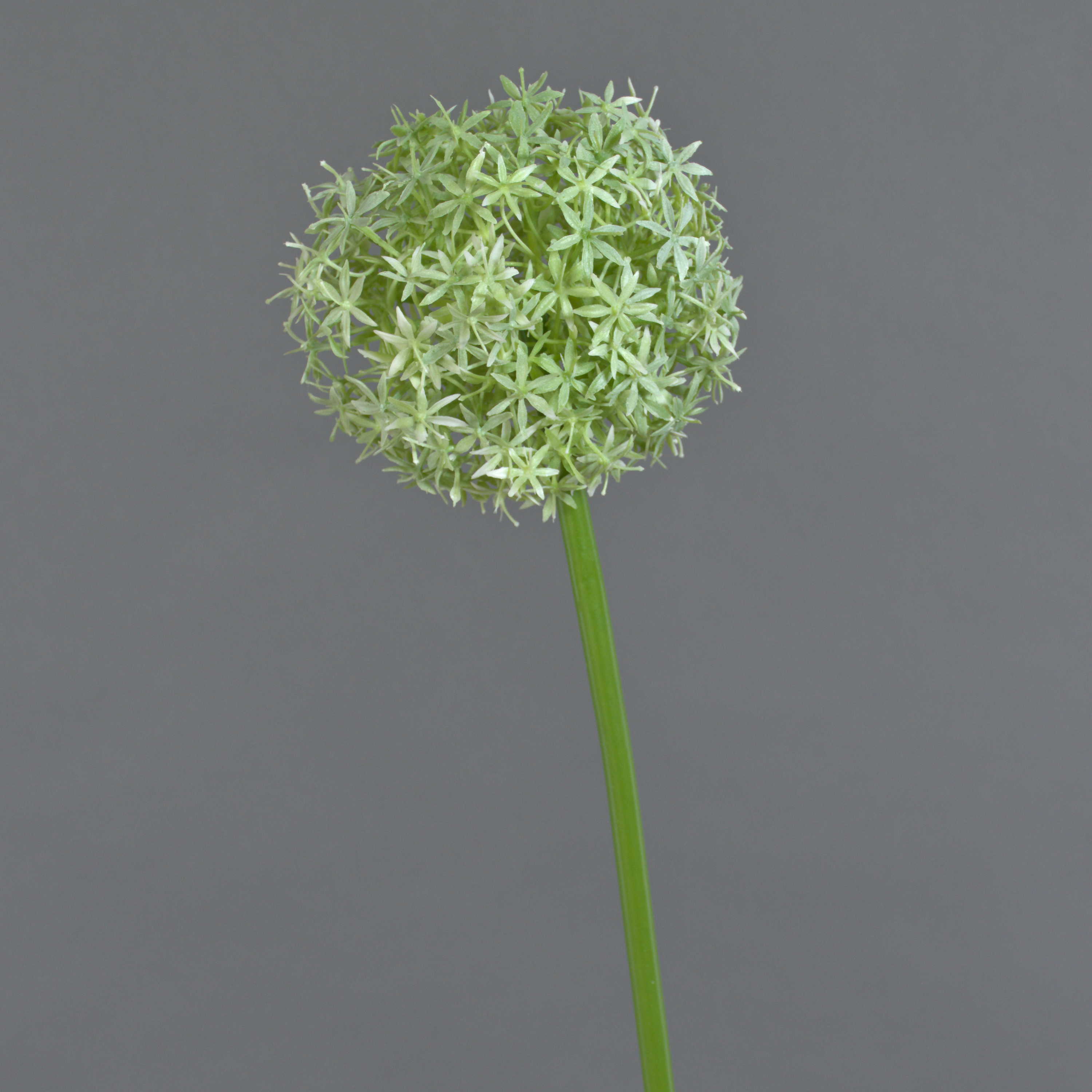Allium artificiale SAMARA con numerosi e delicati fiorellini disposti sfericamente. Il fiore artificiale ha un diametro di ca. 12 cm e può quindi essere utilizzato singolarmente per la decorazione di un portafiori.