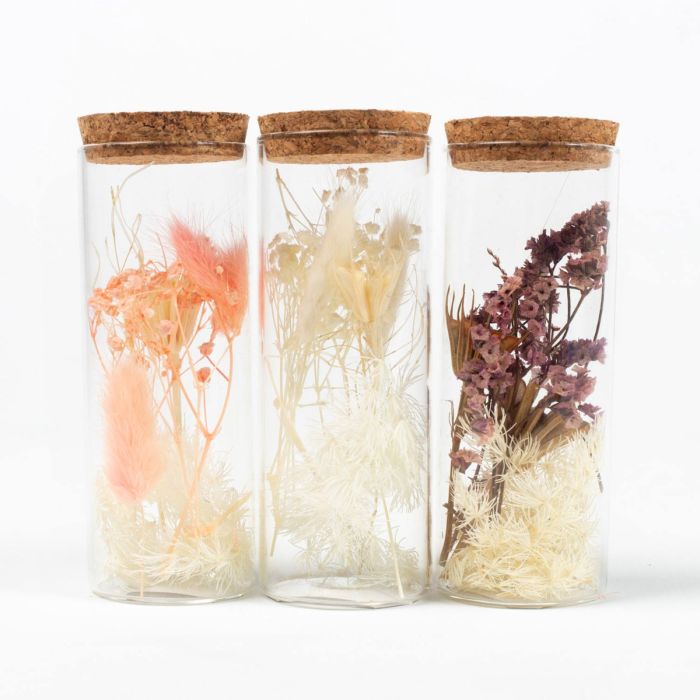 Fiori secchi in vetro FELICITY, 3 pezzi, rosa-viola-bianco, 12,5cm, Ø4,5cm