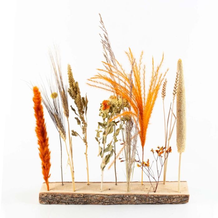 Fiori secchi su piatto di legno MICHAEL, arancio-verde, 40x7x35cm