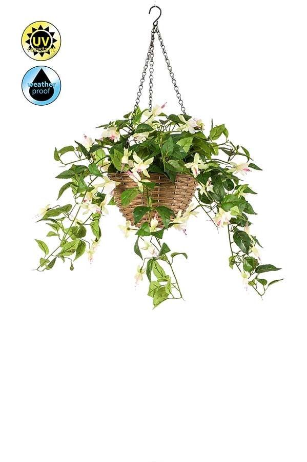 Fioriera artificiale Fucsia JONKFUN in cesto, crossdoor, crema-rosa, 70 cm