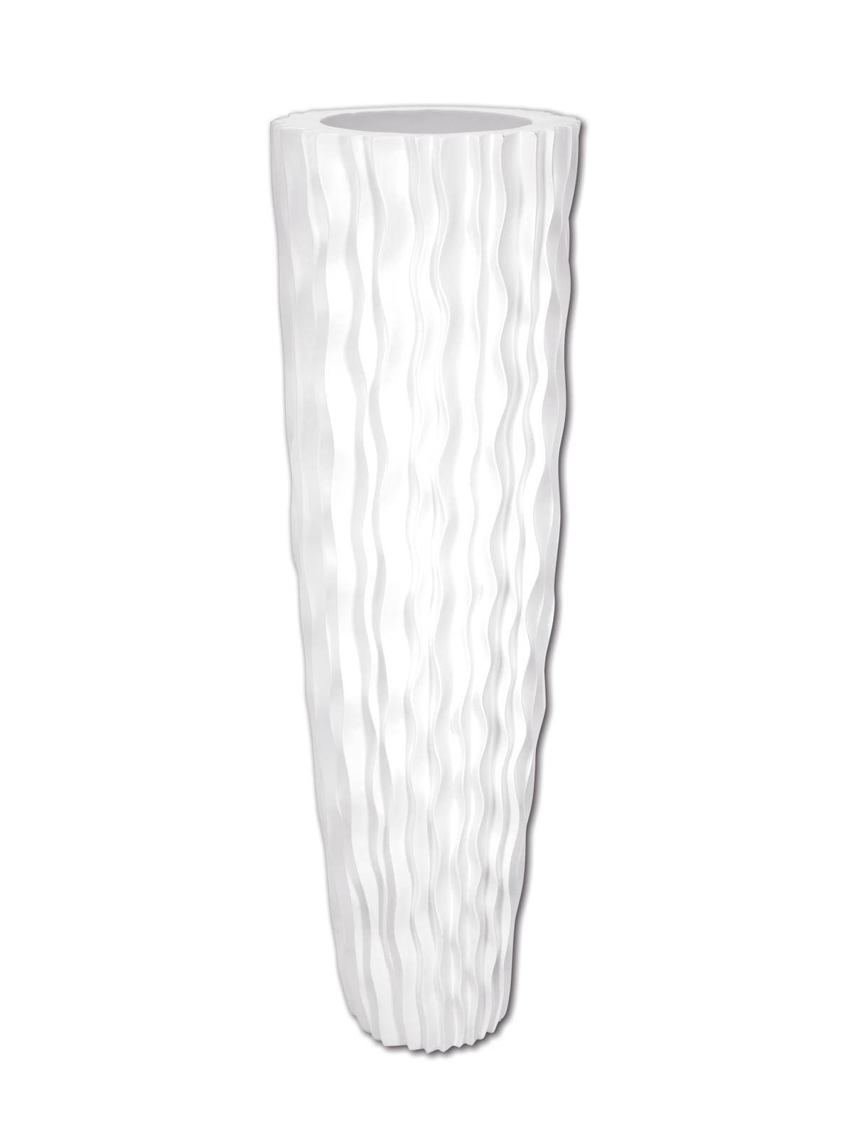 Fioriera ad imbuto con un'altezza di ca. 143,5 cm e un diametro di 44 cm. Il vaso, particolarmente leggero e robusto, è moderno nel design e di colore.