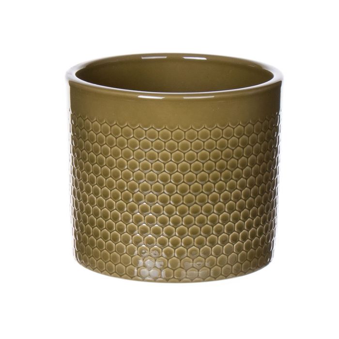 Fioriera in ceramica CINZIA, motivo a puntini, kaki, 12,3cm, Ø13,5cm
