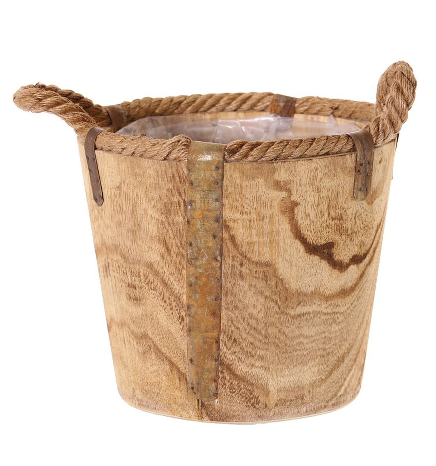 Fioriera in legno DABIH con manici in corda, marrone, 22cm, Ø24cm