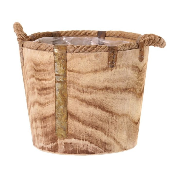 Fioriera in legno DABIH con manici in corda, marrone, 24cm, Ø29cm
