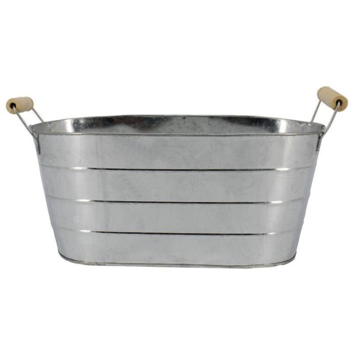 Fioriera ovale JULISA con manico, zinco, argento, 21x12,5x9,5 cm