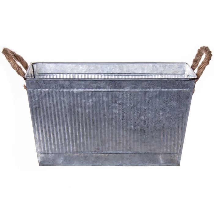 Fioriera rettangolare BIMETO con manici, scanalature, zinco, argento, 29x19x15 cm