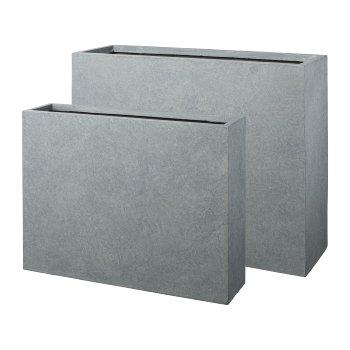 Fioriera rettangolare KIRIMA, 2 pezzi, fibra di vetro, grigio, 75x19x59 cm, 85x27x70 cm