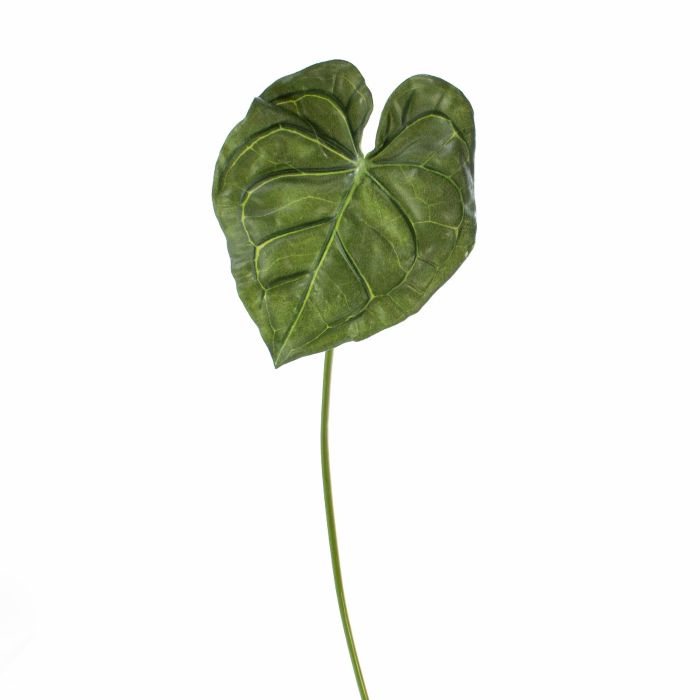 Foglia singola artificiale di pianta di Anthurium/Anturio. La foglia è di colore verde e misura ca. 65 cm in lunghezza.